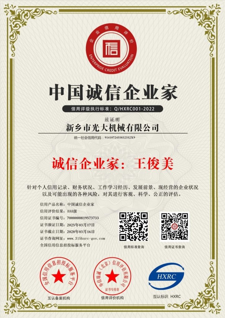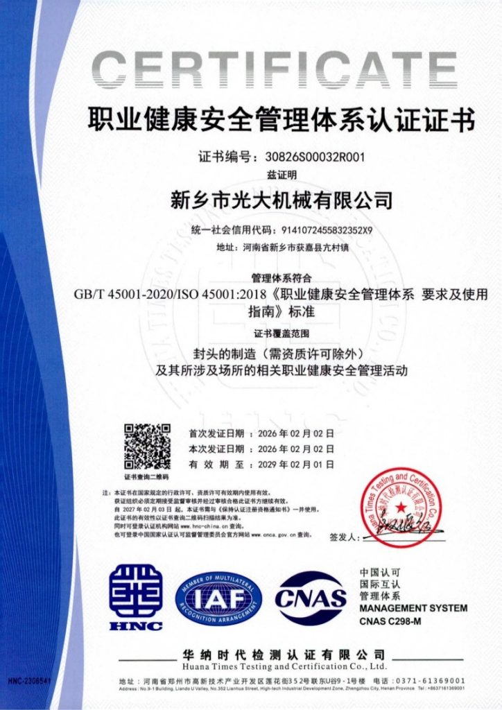 Новосиянская компания ООО Синсян Гуанда Машиностроение находится по адресу: 43-й километр + 300 метров провинциальной трассы 225, пос. Канцунь, уезд Хоцзя, г. Синьсян, пров. Хэнань, транспортное сообщение очень удобное. Компания имеет лицензию на производство уровня А3, выданную Главным государственным управлением по надзору за качеством, инспекцией и карантином КНР, а также сертификаты системы менеджмента качества, системы экологического менеджмента и системы менеджмента профессионального здоровья и безопасности. Компания многократно участвовала в социальных благотворительных мероприятиях, таких как помощь сельскому хозяйству, поддержка образования и борьба с бедностью, и неоднократно признавалась предприятием уровня 3А, предприятием, вносящим вклад в налогообложение, и т.д.